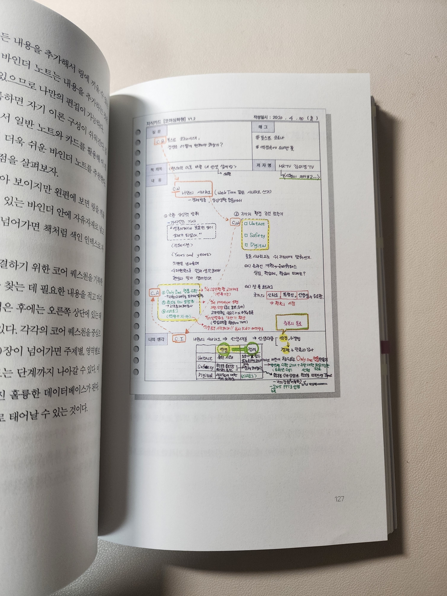 저자는 독서 기록인 책을 읽고 내용을 정리하는 지식카드를 통해서 정보편집력을 키울 수 있다고 합니다.