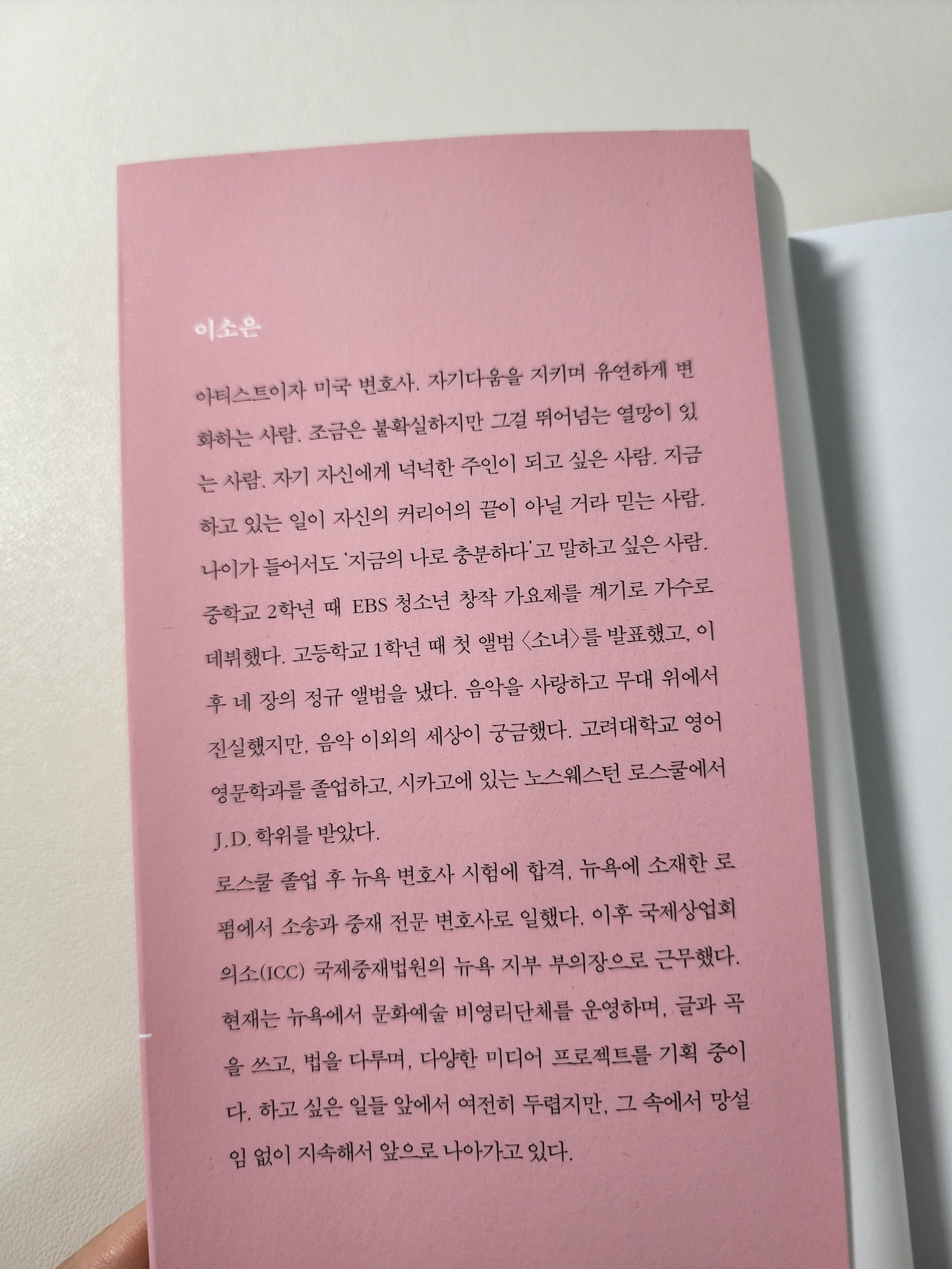 이 책의 저자는 가수, 변호사, 작가 등 다양하고 스펙터클한 타이틀의 소유자입니다.