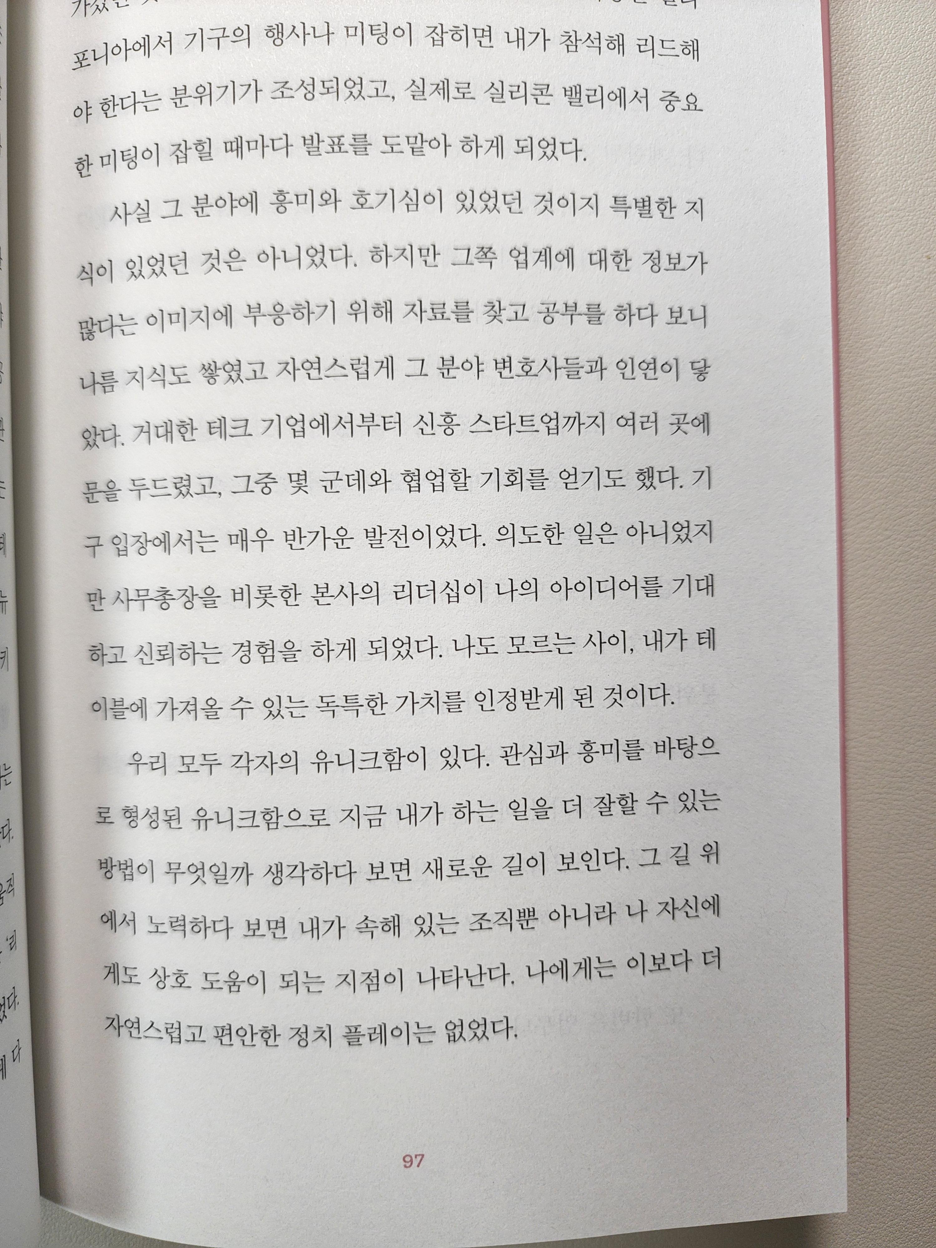 우리 모두 각자의 유니크함이 있다. 관심과 흥미를 바탕으로 형성된 유니크함으로 지금 내가 하는 일을 더 잘할 수 있는 방법이 무엇일까 생각하다 보면 새로운 길이 보인다. p97